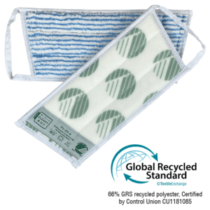 Anvendes til rengøring af paneler, døre, borde, vægge og andet inventar. I tør tilstand genereres en stærk elektrostatisk opladning, som tiltrækker støv og løst snavs. Tåler klor og sprit pga. den høje råvarekvalitet. Kan anvendes tør, fugtig eller våd. Produktet vil ikke foretage slitage eller skader på overflader ved anbefalet anvendelse. Produktet kan anvendes uden rengøringskemikalier. Rengør effektivt blot med vand. Passer til 25 cm ultralet fremfører, art. nr. 3001. Dette produkt er fremstillet af 66% recycled fiber fra indsamlet forbrugeraffald, som er certificeret af Global Recycled Standard (GRS). Produktet er certificeret med Svanemærket 3. generation.