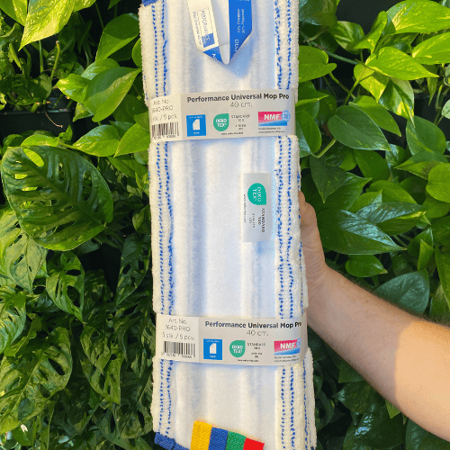 Vi har hos NMF dedikeret omfattende ressourcer og tid til at forberede os på disse lovgivningsmæssige ændringer. Derfor har vi hos besluttet at erstatte plastikposerne omkring vores basismopper med papirstrimler. Disse genanvendelige papirstrimler vil blive introduceret på vores OEKO-TEX® STANDARD 100 produkter allerede fra 1. august 2024. Dette skridt er blot en del af vores omfattende initiativ til at nedbringe plastikforbruget i vores emballage. Derfor udvider vi tiltaget til alle vores svanemærkede mopper fra januar 2025.